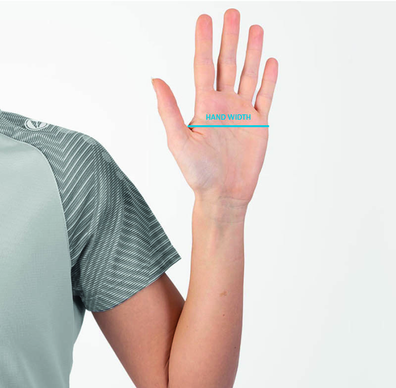 ШИРИНА РУКИ: Виміряйте найширшу частину долоні в розпрямленому стані.